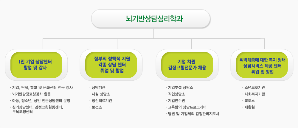 뇌과학과 심리학의 융합지식을 바탕으로 다양한 진로를 선택할 수 있습니다.