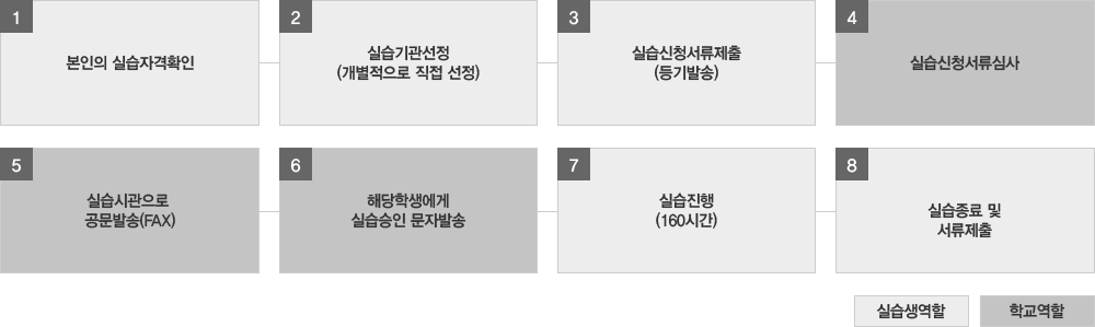 - 5/1 기관 전체 운영 및 해당 실습지도교사의 실습지도가 있어야만 실습으로 인정